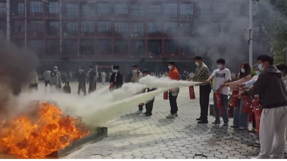 集结完毕后,学校保卫处消防专业人员现场示范干粉灭火器“提、拔、握、压”标准操作流程,详细讲解灭火器适用场景、操作要点及安全注意事项。随后,师生分批分组开展实操演练,在专业指导下模拟火点扑救,熟练掌握了消防器材使用技巧,切实将理论知识转化为实战能力。